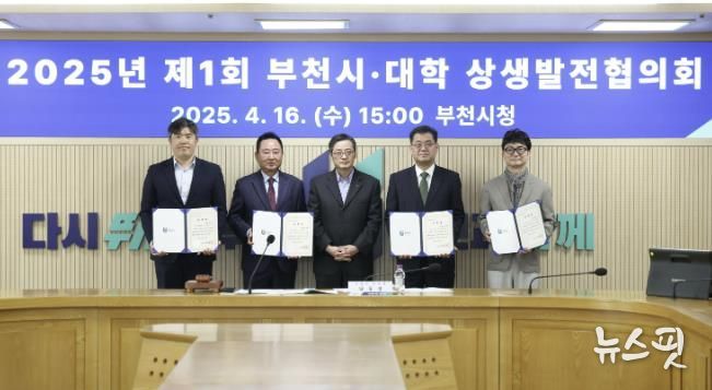 (뉴스핏 = 김호 기자) 부천시는 지난 16일 부천시청 창의실에서 지역 대학과 부천산업진흥원, 부천상공회의소, 부천강소기업협의회, 온세미컨덕터코리아 등 주요 산학 기관이 참여한 가운데 ‘2025년 제1회 부천시‧대학 상생발전협의회’를 열었다.