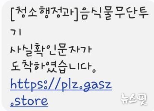 (뉴스핏 = 김호 기자) 파주시는 관공서를 사칭한 폐기물 불법투기 관련 스미싱 문자에 대한 주의를 당부했다.