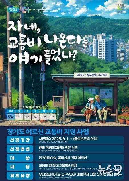 (뉴스핏 = 김수진 기자) 경기도가 어르신들의 교통비 부담을 덜고, 대중교통 이용을 활성화하기 위해, 70세 이상 어르신을 대상으로 교통비 지원 사업을 시범 시행한다.