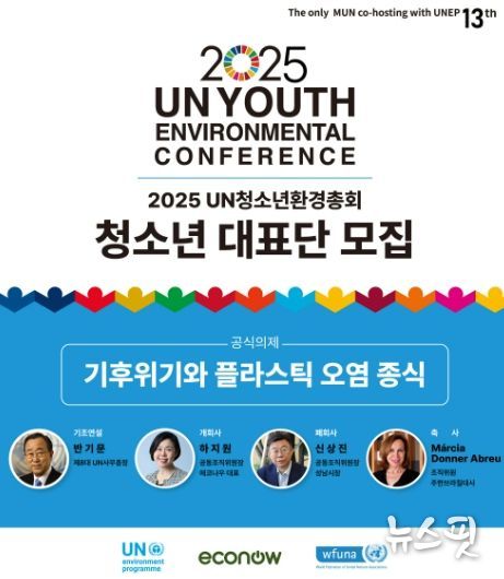 (뉴스핏 = 김호 기자) 성남시청소년청년재단 판교유스센터와 환경단체 에코나우는 오는 11월 15일부터 16일까지 이틀간 성남 국립국제교육원에서 열리는 ‘2025 UN청소년환경총회’에 참가할 국내외 청소년 대표단 300명을 10월 13일까지 모집한다. 이번 총회는 성남시청소년청년재단 판교유스센터와 환경단체 에코나우가 공동 주관하며, 반기문 전 UN사무총장과 브라질 대사 등 주요 인사가 참석한다.