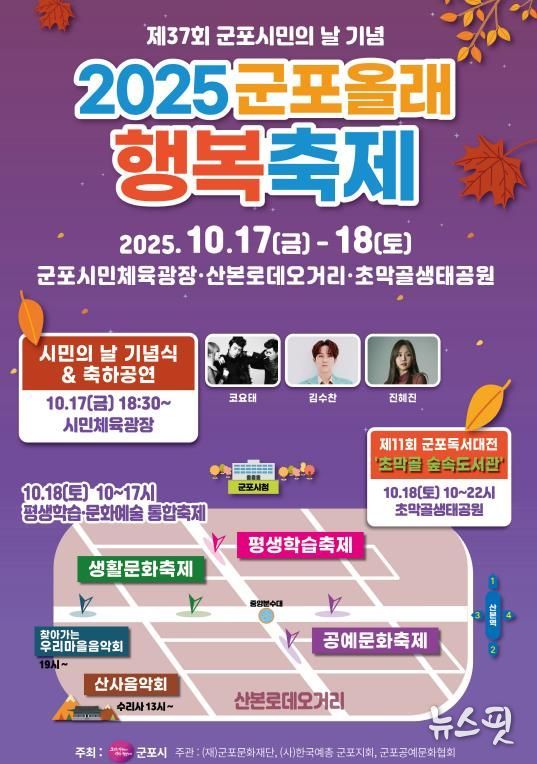 (뉴스핏 = 김수진 기자) 군포시는 제37회 시민의 날을 기념하여 오는 10월 17일부터 10월 18일 양일간 군포올래 행복축제를 개최한다.