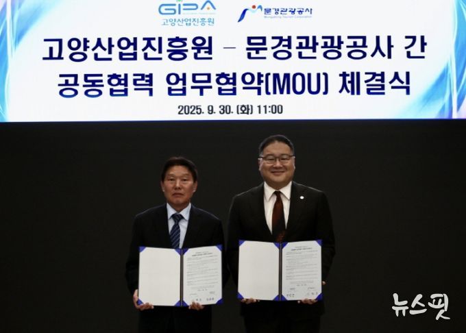 (뉴스핏 = 김수진 기자) 고양산업진흥원이 지난 30일, 고양아쿠아특수촬영스튜디오에서 문경관광공사와 공동협력 업무협약 MOU를 체결했다.