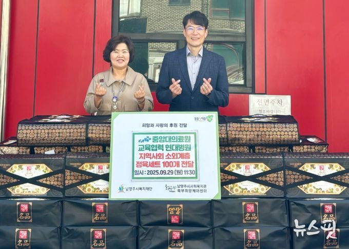 (뉴스핏 = 김호 기자) 남양주시는 지난달 29일 진접읍에 위치한 중앙대의료원 교육협력 현대병원이 추석을 앞두고 1,000만 원 상당의 정육세트 100개를 북부희망케어센터에 전달했다고 2일 밝혔다.