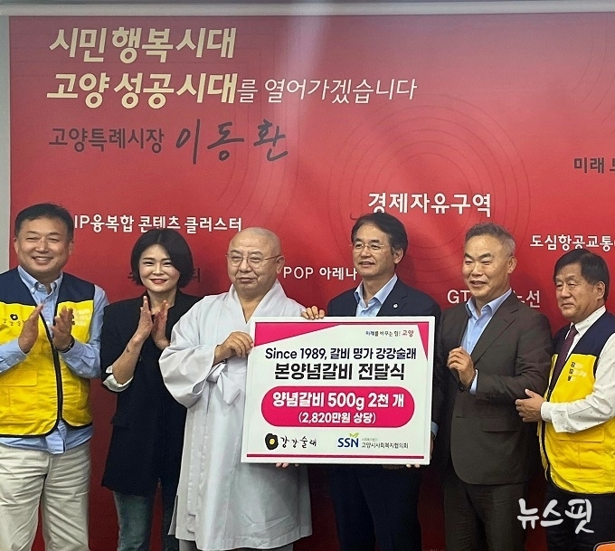 (뉴스핏 = 김수진 기자) ㈜전한의 외식브랜드 강강술래(대표 노상환)가 10일 고양특례시에 본양념갈비 500g 2000개(2820만 원 상당)를 기탁했다.