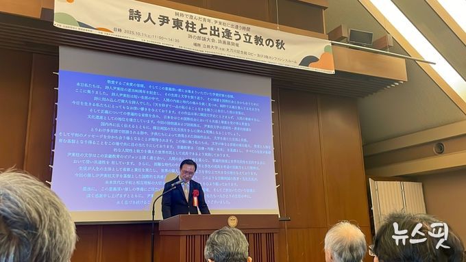 (뉴스핏 = 김수진 기자) 임태희 경기도교육감이 11일 일본 도쿄 릿쿄대학에서 열린 ‘윤동주 시인 서거 80주년 기념 시낭송 대회 및 기념비 제막식’에 참석했다.