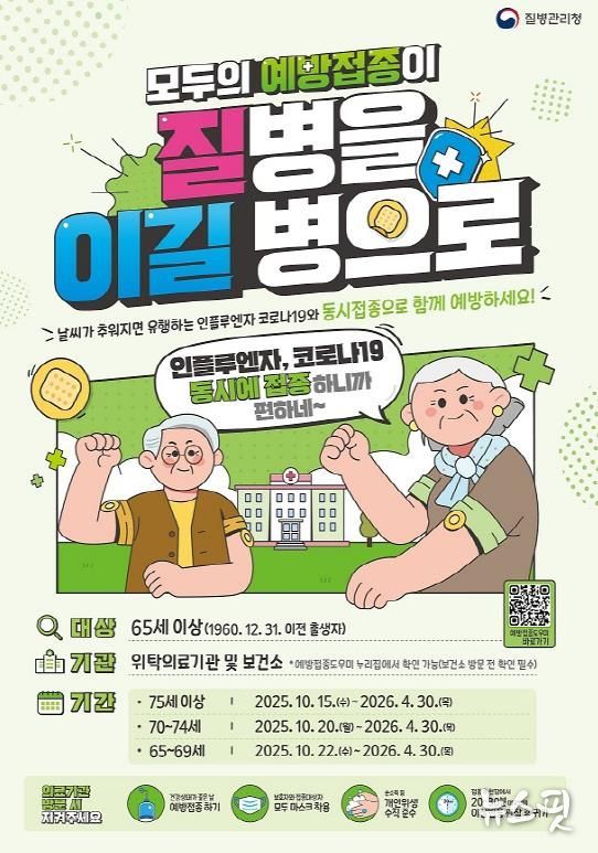 특히 65세 이상 어르신은 독감(인플루엔자)과 코로나19 백신을 같은 날 동시에 접종 받을 수 있다. 세부 접종 일정은 ▲75세 이상은 10월 15일 ▲70~74세는 10월 20일 ▲65~69세는 10월 22일부터 순차적으로 진행된다.