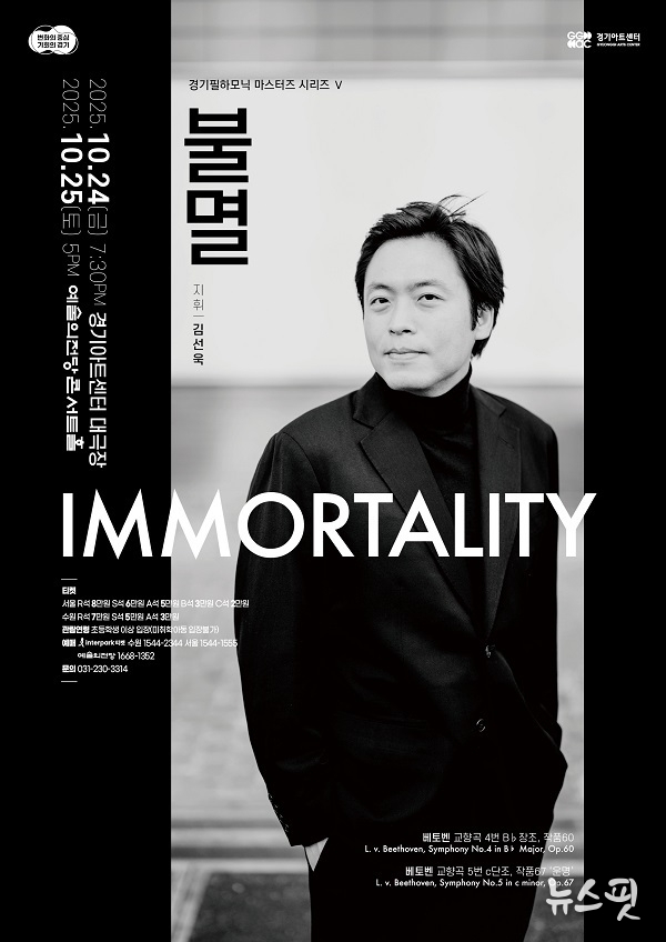 (뉴스핏 = 김수진 기자) 경기필하모닉오케스트라가 오는 24일 경기아트센터 대극장과 25일 예술의전당 콘서트홀에서 ‘경기필 마스터즈 시리즈 V <불멸>’을 선보인다.