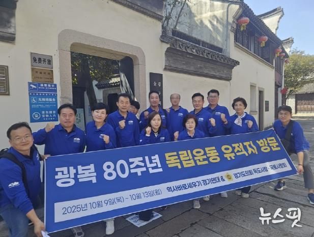 (뉴스핏 = 김수진 기자) 광복 80주년을 맞아 중국 내 항일 독립운동 유적지를 탐방한 경기도의회 ‘독도사랑ㆍ국토사랑회’와 ‘역사바로세우기 경기연대’가 5일간의 일정을 마치며, 선열들의 숭고한 정신을 이어받아 경기도에서 올바른 역사관을 정립하고, 영토 주권 수호를 위한 활동을 더욱 강력히 펼쳐나가겠다고 다짐했다.