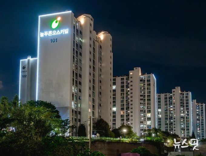 (뉴스핏 = 김수진 기자) 오산시 관내 아파트(공동주택) 단지들이 오색찬란한 빛으로 물들고 있다.