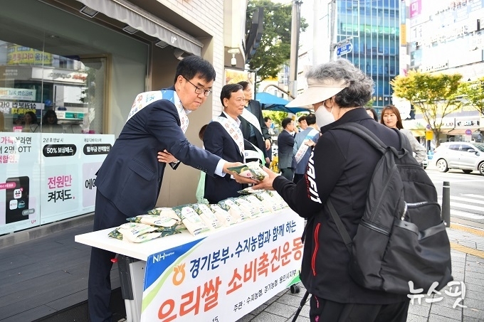 (뉴스핏 = 김수진 기자) 농협중앙회 경기본부(본부장 엄범식)와 수지농협(조합장 안철훈)은 15일 용인시 수지구청역 일대에서 ‘농심천심(農心天心) 운동’과 연계한 쌀 소비촉진 캠페인을 펼쳤다.