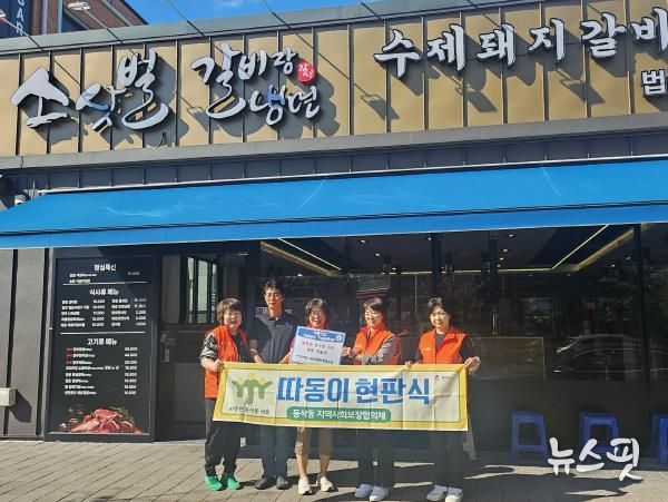 (뉴스핏 = 김수진 기자) 평택시 동삭동 지역사회보장협의체는 지난 15일 관내 취약계층 10가구에 월 2회 정기적으로 5가지 밑반찬을 지원할 예정인 소삿벌 법원직영점에 ‘따동이’ 5호점 현판을 전달했다.