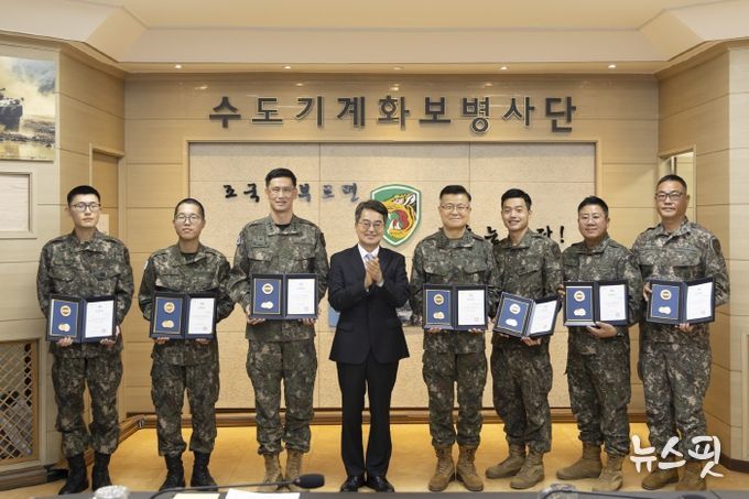 김동연 지사는 이날 가평 수도기계화보병사단에서 부대 및 유공자 6명을 표창하고 경기도 위문금을 전달했다. 표창장 수여행사는 맹호부대 각급 지휘관도 영상 모니터로 시청하며 함께했다.