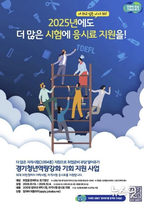 (뉴스핏 = 김호 기자) 광주시는 미취업 청년들의 취업 준비 부담을 완화하고 역량 강화를 돕기 위해 어학 및 자격시험 응시료를 지원하는 ‘경기청년 역량강화 기회지원 사업’ 참여자 추가 모집을 진행한다고 20일 밝혔다.
