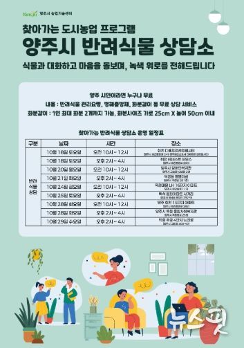 (뉴스핏 = 김호 기자) 양주시가 시민들의 정서적 치유와 녹색생활 실천을 돕기 위해 10월 29일까지 ‘찾아가는 반려식물 상담서비스’를 운영한다.