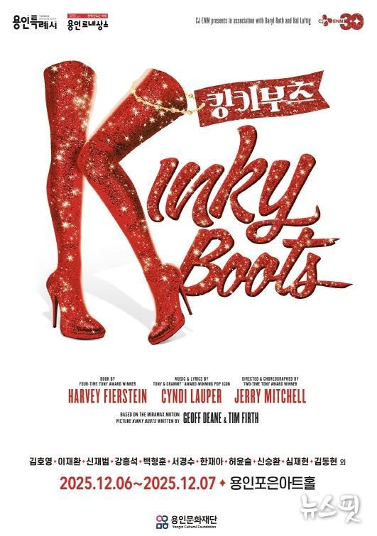 (뉴스핏 = 김수진 기자) 용인문화재단은 오는 12월 6일부터 7일까지 용인포은아트홀에서 뮤지컬 ‘킹키부츠’를 선보인다. 이번 공연은 양일간 오후 2시와 7시, 총 4회 진행되며, 관람 연령은 만 8세 이상으로 미취학 아동은 입장이 불가하다.
