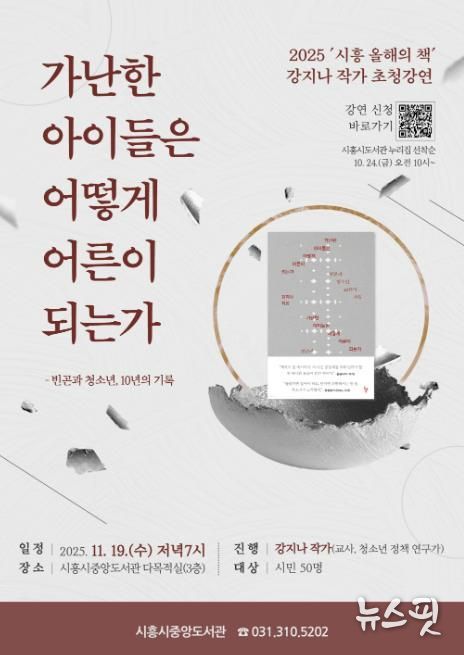 (뉴스핏 = 김수진 기자) 시흥시 중앙도서관은 ‘2025년 시흥 올해의 책’으로 선정된 '가난한 아이들은 어떻게 어른이 되는가'의 저자 강지나 작가를 초청해 11월 19일 오후 7시 중앙도서관 3층 다목적실에서 시민 강연회를 개최한다고 22일 밝혔다.