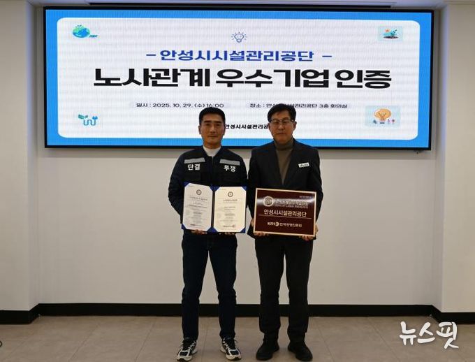 (뉴스핏 = 김수진 기자) 안성시시설관리공단은 안성시시설관리공단 노동조합과 함께 상생과 신뢰를 기반으로 한 모범적인 노사문화를 인정받아 ‘노사관계 우수기업’ 인증을 획득하했다고 3일 밝혔다.