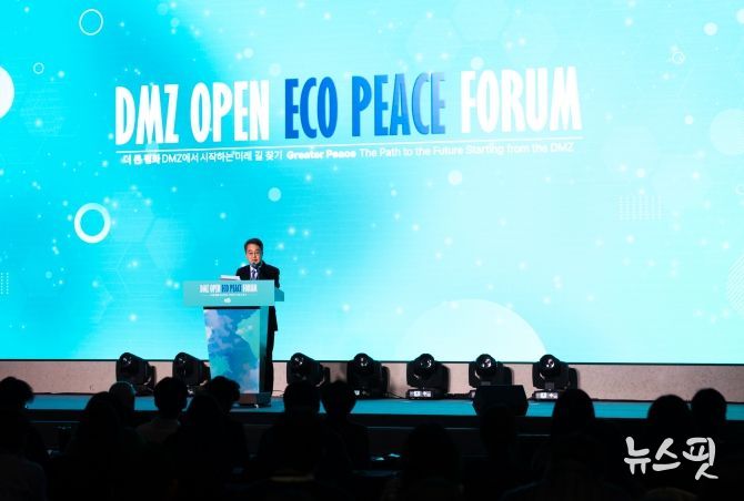 경기도는 3일 소노캄 고양 그랜드볼룸에서 ‘2025 DMZ OPEN 에코피스포럼’ 개회식을 개최했다. 이번 포럼은 ‘더 큰 평화 – DMZ에서 시작하는 미래 길 찾기’를 주제로, DMZ의 생태·평화 가치를 기반으로 지속가능한 미래의 방향을 모색하기 위해 마련됐다.