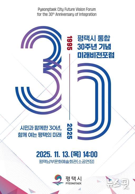(뉴스핏 = 김수진 기자) 평택시는 통합 30주년을 기념하여 오는 13일 평택남부문화예술회관 소공연장에서 ‘평택시 통합 30주년 기념 미래비전포럼’을 개최한다.