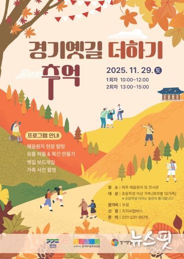 (뉴스핏 = 김수진 기자) 경기문화재단 경기역사문화유산원는 오는 11월 29일 토요일, 의주길에 위치한 파주 혜음원지 일대에서 초등학생 이상 자녀를 둔 가족을 대상으로 하는 역사 체험 프로그램 ‘경기옛길 더하기 추억’을 개최한다고 밝혔다.