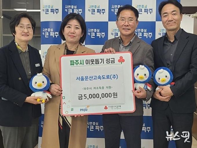 (뉴스핏 = 김호 기자) 파주시는 지난 11일 서울문산고속도로㈜로부터 저소득 취약계층을 위한 후원금 500만 원을 기탁 받았다고 밝혔다.