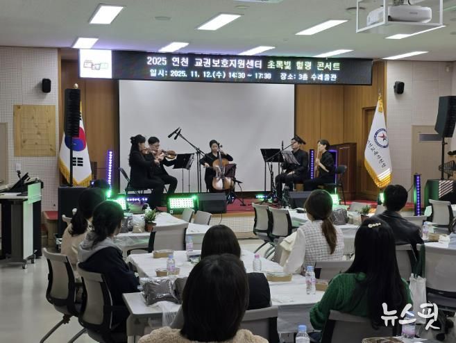 (뉴스핏 = 김수진 기자) 경기도연천교육지원청 교권보호지원센터는 2025년 11월 12일 연천교육지원청 3층 수레울관에서 교원의 정서 회복과 마음 치유를 위한 '초록빛 힐링 콘서트'를 진행했다.