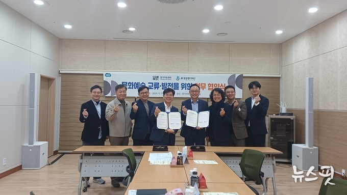 (뉴스핏 = 김수진 기자) 경기아트센터가 경기도 내 지역 문화재단과의 업무협약으로 기관 간 협력망 구축을 본격화하고 있다. 14일 광명문화재단(대표이사 송은영)과 업무협약을 체결한 데 이어, 17일에는 파주문화재단(대표이사 김영준)과 협약을 맺었다. 이번 협약은 문화예술 교류와 경기도 문화예술 발전을 위한 상호 협력을 핵심으로 한다.