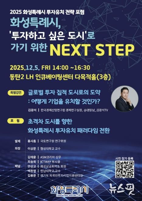 (뉴스핏 = 김수진 기자) 화성특례시가 ‘2025 화성특례시 투자유치 전략 포럼’을 다음 달 5일 동탄2 인큐베이팅센터 다목적홀에서 개최한다.