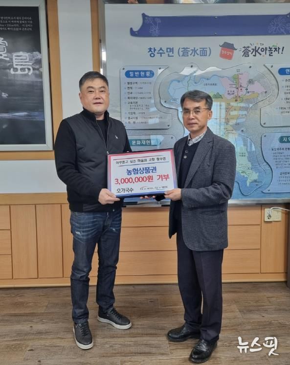 안문종 창수면장은 “지역사회를 위한 기업의 따뜻한 나눔에 깊이 감사드린다”며 “기탁된 상품권은 도움이 필요한 가구에 투명하고 신속하게 전달해 주민들에게 실질적인 도움이 될 수 있도록 최선을 다하겠다”고 전했다.