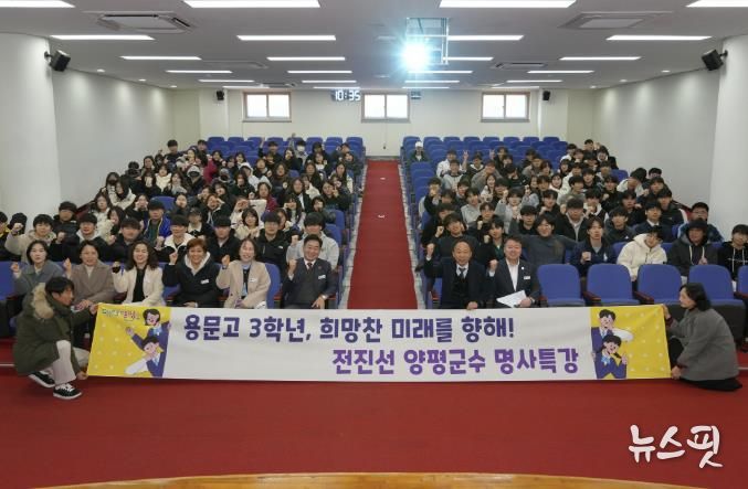 (뉴스핏 = 김호 기자) 전진선 양평군수는 지난 19일 용문고등학교 소강당에서 3학년 학생 140여 명을 대상으로 ‘큰 꿈을 향한 준비가 미래를 여는 힘’을 주제로 명사 특강을 진행했다.