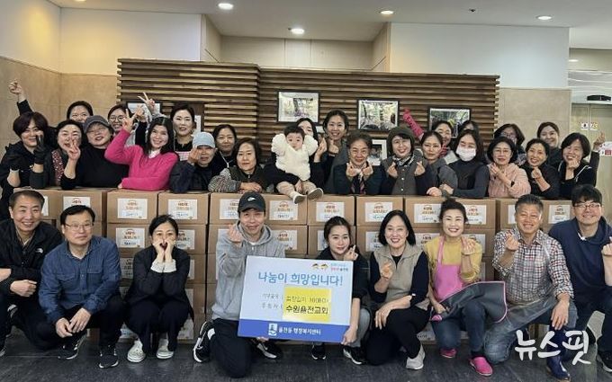 (뉴스핏 = 김호 기자) 수원시 장안구 율천동 소재 율전교회가 지난 20일 정성이 가득 담긴 김장김치 100박스를 율천동 행정복지센터에 기탁하며 올해도 따뜻한 나눔을 이어갔다.