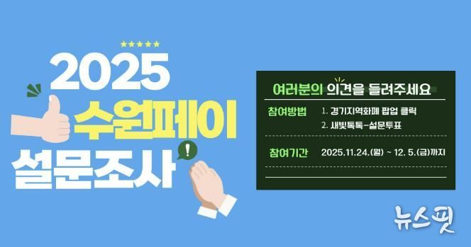 (뉴스핏 = 김호 기자) 수원특례시가 24일부터 12월 5일까지 ‘2025년 수원페이 사용자 설문조사’를 한다.