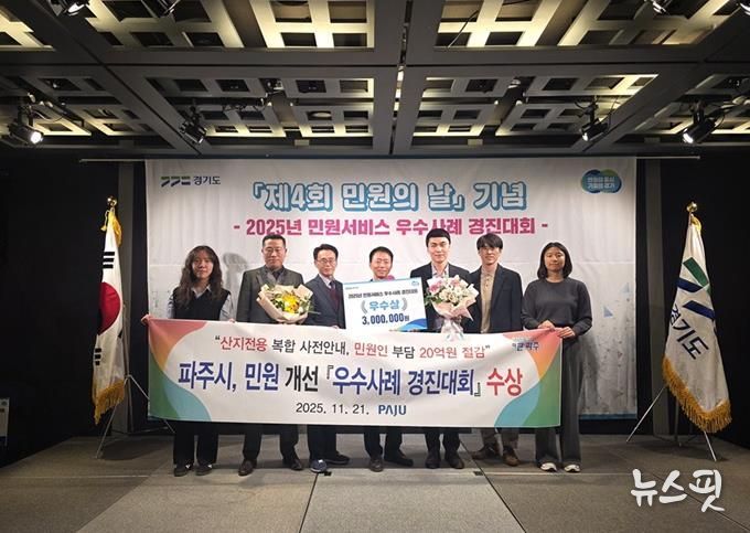 (뉴스핏 = 김호 기자) 파주시는 지난 21일 경기도가 주최한 '2025년 민원서비스 개선 우수사례 경진대회'에서 우수상을 수상했다고 밝혔다.