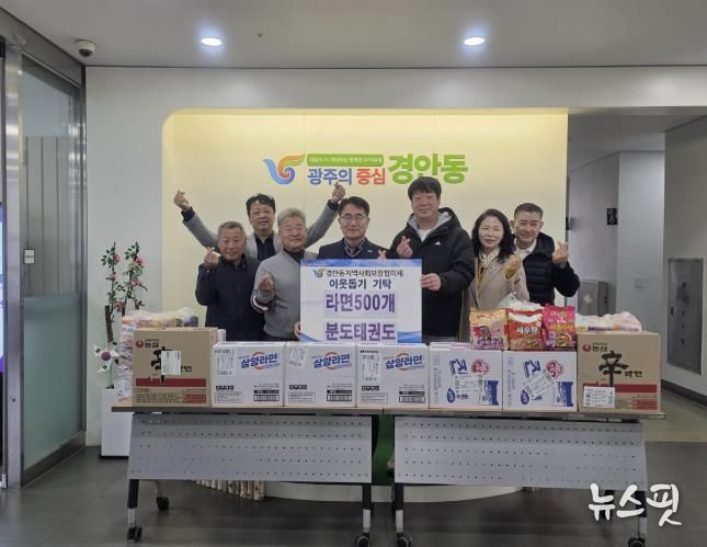 이에 대해 한상흠·이정한 경안동 지역사회보장협의체 공동위원장은 “분도태권도의 따뜻한 정성으로 모아주신 라면을 어려운 이웃을 위해 소중히 사용하겠다”며 “추워지는 날씨 속에서도 따뜻한 마음이 큰 힘이 되고 있다”고 감사의 뜻을 전했다.