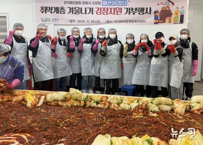 (뉴스핏 = 김호 기자) 남양주시는 28일 진건퇴계원행정복지센터가 한국패션협회 소그룹 모임 ‘패션이 떴다’ 회원들과 함께 취약계층 지원을 위한 김장 김치 담그기 행사를 진행했다고 밝혔다.