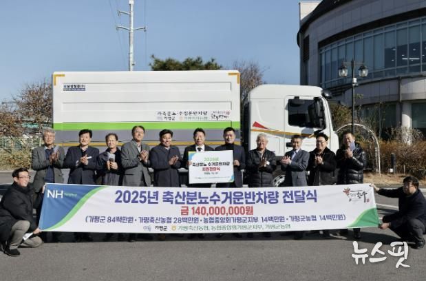 (뉴스핏 = 김호 기자) 가평군은 1일 가평축협에 축산분뇨 수거‧운반용 특수차량을 전달하고 친환경 축산환경 조성을 위한 협력 의지를 다졌다고 밝혔다.