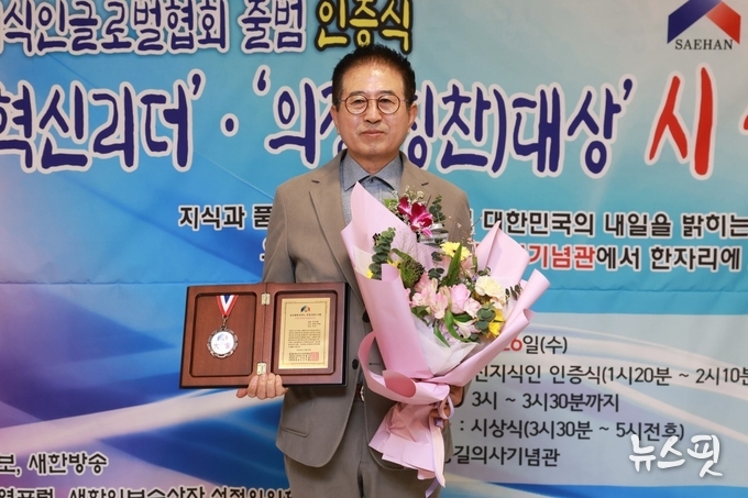 (뉴스핏 = 김수진 기자) 허경행 광주시의회 의장이 매헌윤봉길의사 기념관에서 ‘2025년 글로벌 혁신리더&의정(칭찬)대상 시상식’에서 지방자치대상(의정발전)을 수상했다.