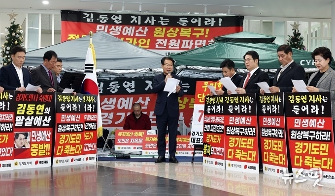 유영두 부위원장은 “이번 2026년도 본예산안 편성과 정무·협치라인의 행정사무감사 불참은 타협 없이 일방통행만 이어가는 김동연 도정의 완전체이다”라며 “이번 사태에 우리의 요구가 관철될 때까지 투쟁하겠다”라고 밝혔다.