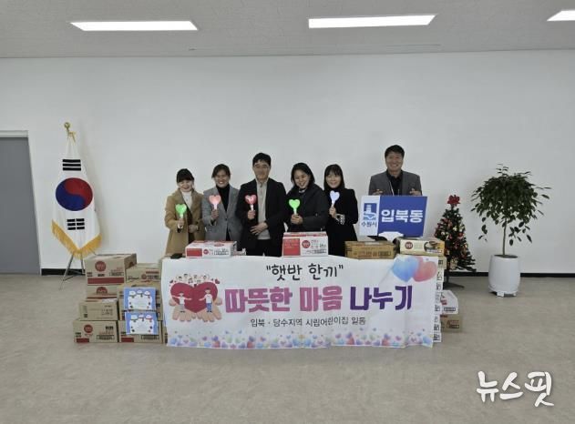 (뉴스핏 = 김호 기자) 당수동 소재 어린이집 5개소(시립 당수동·시립 수원당수 LH 1·시립 수원당수 LH 2·시립 라포리엘·시립 한라 비발디 3단지 어린이집)는 지난 4일 입북동 행정복지센터를 방문해 생필품(햇반, 김 등) 72박스를 전달했다.