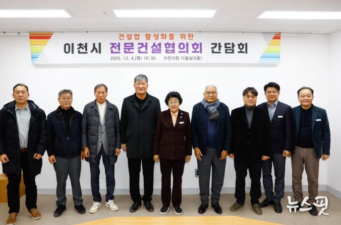 (뉴스핏 = 김수진 기자) 이천시는 12월 4일 시청 다올실에서 전문건설협회와 간담회를 열고 지역 건설산업과 관련한 현장의 의견을 청취하는 자리를 마련했다. 이번 간담회에는 김경희 이천시장과 김종구 전문건설협회장을 비롯한 협회 임원 등 총 9명이 참석했다.