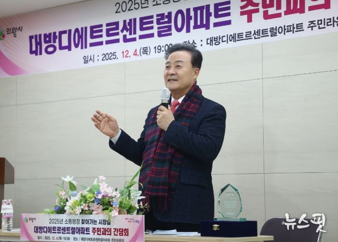 (뉴스핏 = 김수진 기자) 의왕시가 12월 4일 대방디에트르센트럴아파트 주민라운지에서 ‘찾아가는 시장실’을 열고 아파트 주민들과 함께 시정 현안과 생활 불편사항에 대해 소통하는 시간을 가졌다.