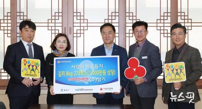(뉴스핏 = 김수진 기자) ㈜삼기는 지난 2일 평택행복나눔본부에 김치 8㎏ 278박스를 전달했다.