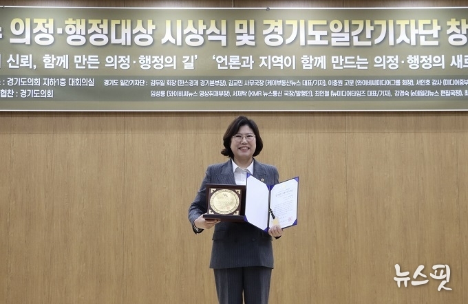 (뉴스핏 = 김수진 기자) 경기도의회 교육행정위원회 이애형 위원장(국민의힘, 수원 세류1·2·3동 및 권선1동)은 10일 경기도일간기자단이 주관한 ‘2025년 우수 의정·행정대상 시상식 및 창립 5주년 기념식’에서 ‘경기발전 그랜드마스터상’을 수상했다.