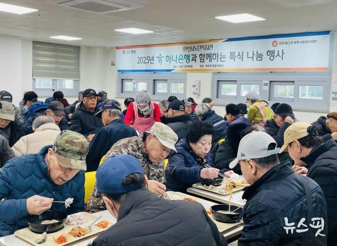 (뉴스핏 = 김수진 기자) 안성시노인복지관은 하나금융나눔재단(하나은행)의 후원을 받아 지역 어르신 950명을 대상으로 ‘2025년 하나은행과 함께하는 특식 나눔 행사’를 성황리에 마쳤다고 12일 밝혔다.