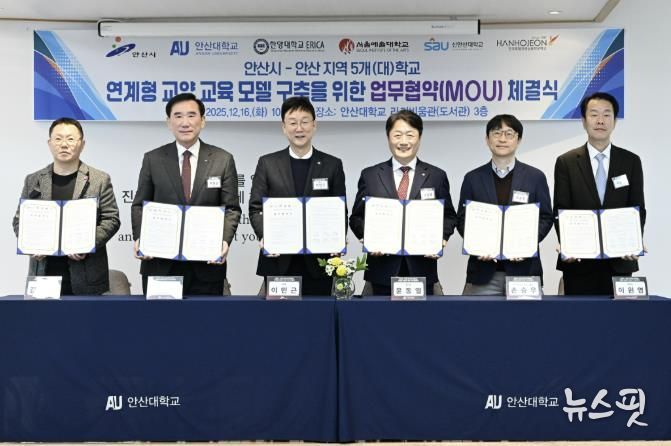 안산시는 지난 16일 안산대학교 라키비움관에서 관내 소재 대학과 ‘지역대학 연계형 교양 교육 모델 구축 협약식’을 개최했다고 17일 밝혔다.