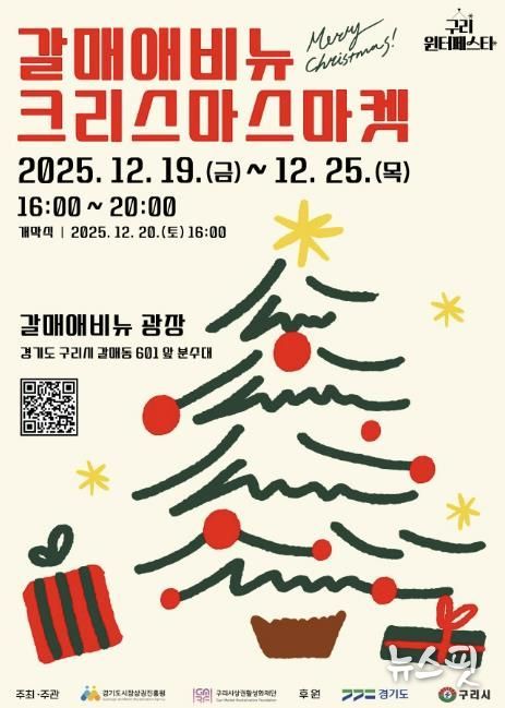 (뉴스핏 = 김수진 기자) 구리시상권활성화재단은 오는 19일부터 25일까지 갈매 애비뉴 광장에서 ‘2025 구리윈터페스타–갈매애비뉴 크리스마스 마켓’을 개최한다고 17일 밝혔다.