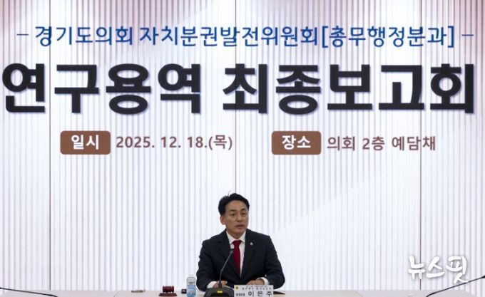 (뉴스핏 = 김수진 기자) 경기도의회 자치분권발전위원회 총무행정분과 이은주 위원장(국민의힘, 구리2)은 18일 '집행기관 견제 강화를 위한 의회 내 상임위원회 조직개편 방안 연구' 최종보고회에 참석해 연구용역 결과를 공유하고 논의했다.