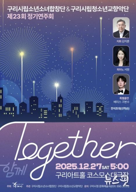 (뉴스핏 = 김수진 기자) 구리시는 오는 27일 오후 5시, 구리아트홀 코스모스 대극장에서 구리시립소년소녀합창단과 구리시립청소년교향악단이 함께하는 '제23회 정기연주회 Together–함께'를 개최한다.