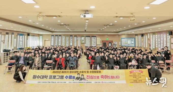 올해 장수대학에서는 4과목 이상 수강하고 출석률 70% 이상을 기록한 어르신 166명이 수료증을 받았다. 특히 최고령 수료자인 이경열 어르신(90세)이 대표로 수료증을 받아 평생학습의 모범을 보여주었으며, 모범상(윤영달)과 학업우수상 등 총 5명의 어르신에게 우수상이 수여됐다.