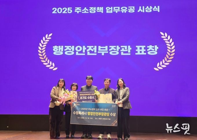(뉴스핏 = 김호 기자) 수원특례시가 행정안전부 주관 ‘2025 주소정책 워크숍’에서 ‘2025 주소정책 업무 분야 우수기관’으로 선정돼 행정안전부 장관 표창을 받았다. 특별교부세 4000만 원도 확보했다.